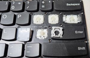 Seien Sie beim Einsetzen der neuen Taste vorsichtig und beachten Sie das Foto mit dem Tastenmechanismus, um die Kompatibilität mit Ihrem Tastaturmodell sicherzustellen.