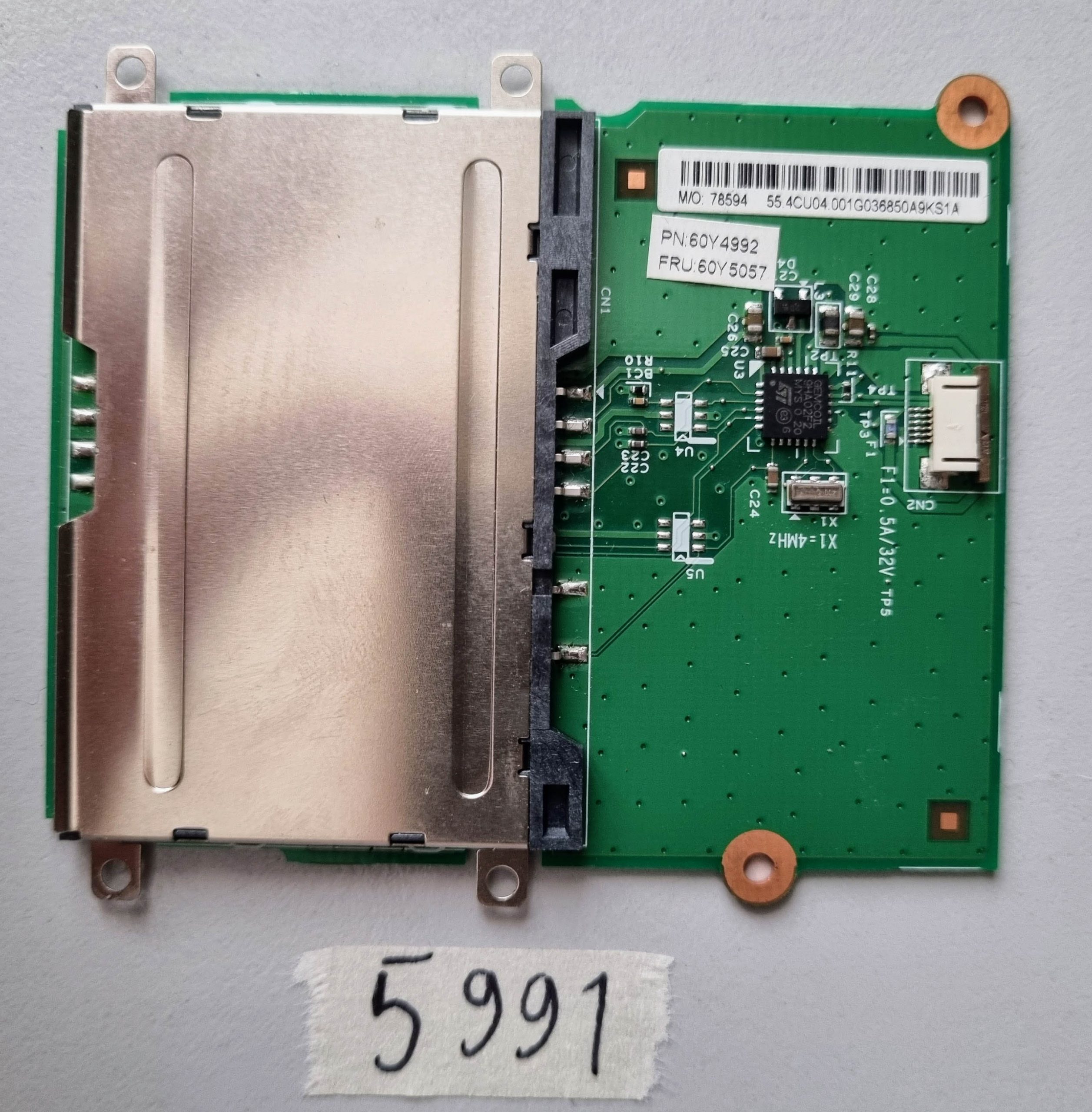 Améliorez ou réparez votre Lenovo ThinkPad T510 avec cette carte de lecteur de carte à puce d’origine (FRU 60Y4992, 60Y5057). Cette pièce d’origine Lenovo est un composant de remplacement d’occasion et testé, garantissant la compatibilité et la fiabilité de votre appareil.