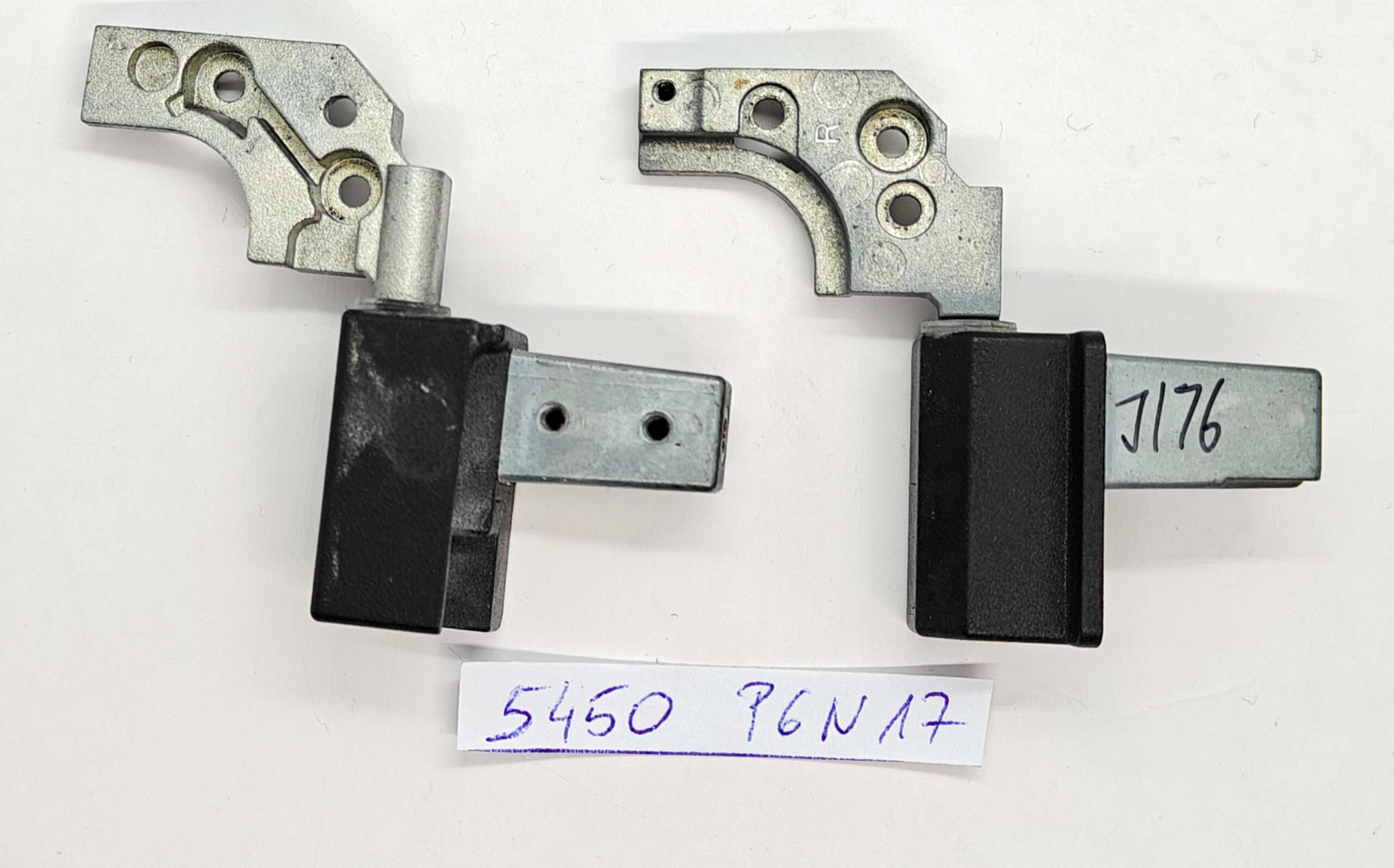 Ezt a már használt zsanérkészletet eltávolították a működőképes Dell Latitude 12 7204 Rugged laptopokról. Mindkét zsanér simán mozog megfelelő ellenállással.