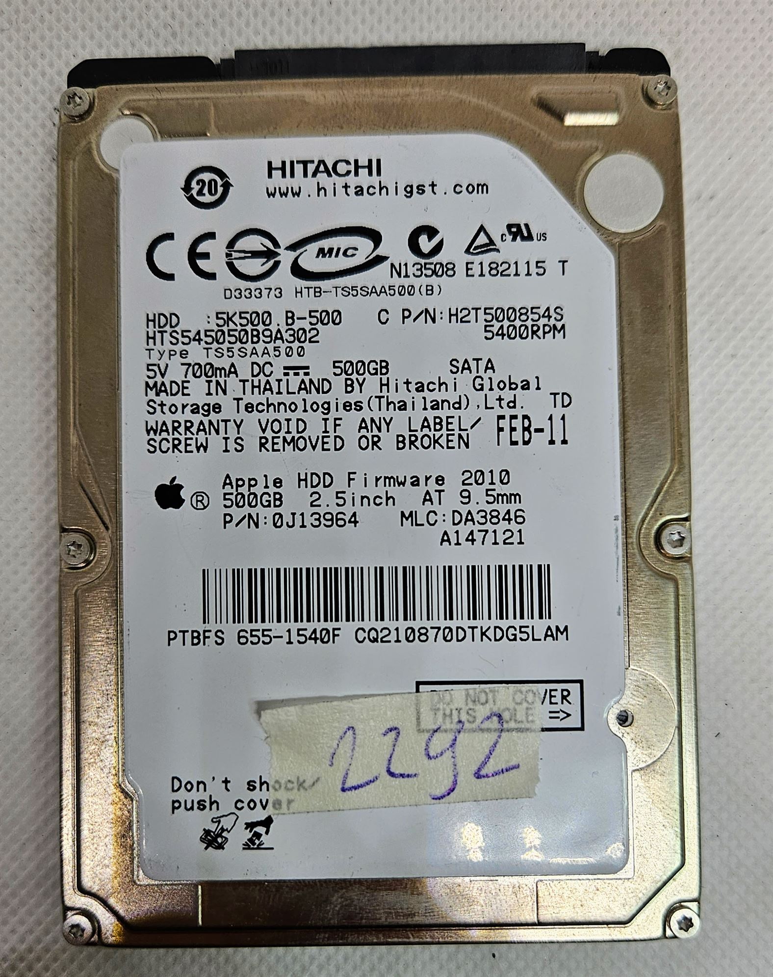 Hitachi 500GB 0A78265 5K500.B-500 5,4K RPM SATA 7mm 2,5 Merevlemez H2T500854S – Megbízható tárolási megoldás!